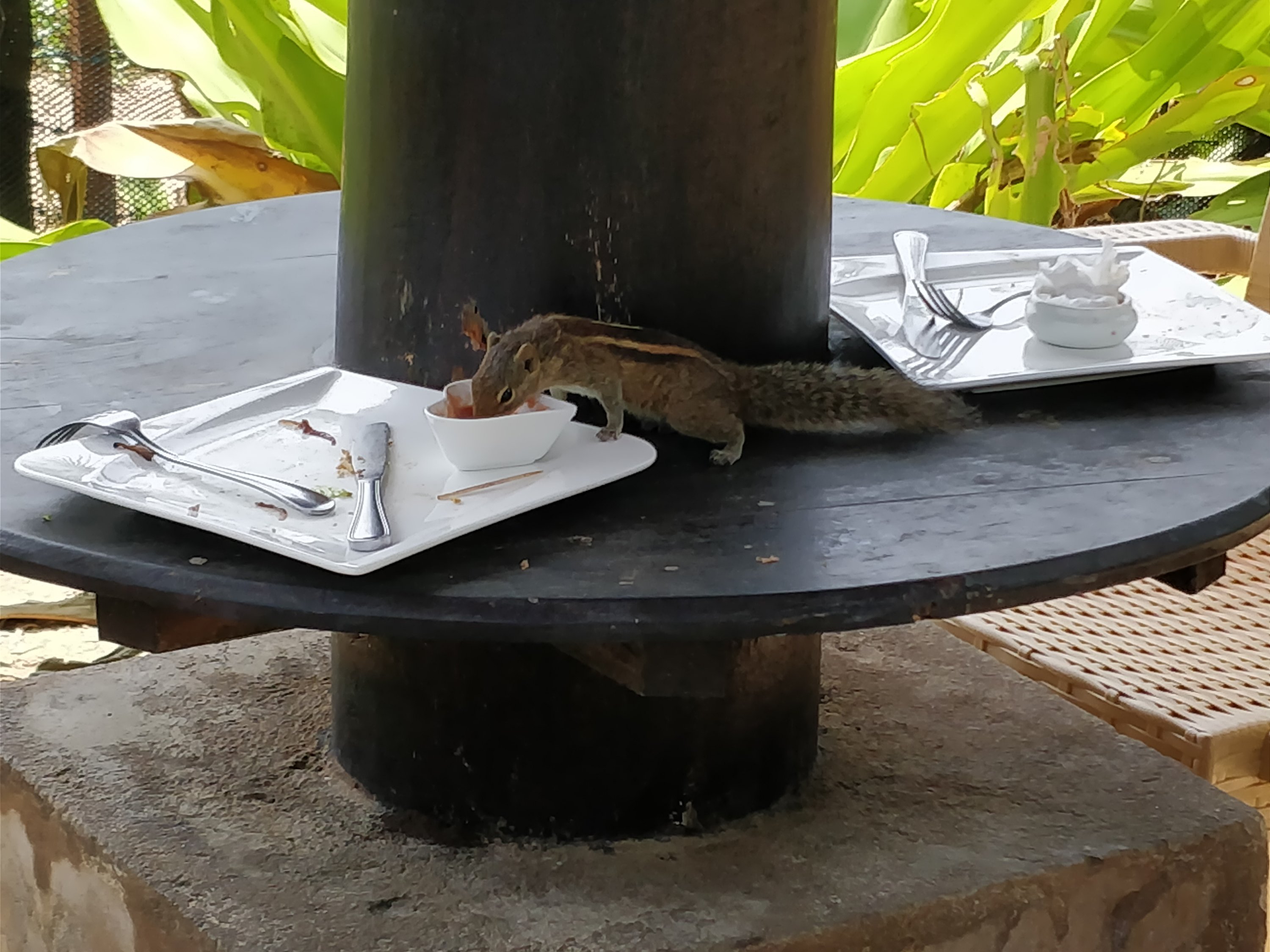 Heute war ausschlafen angesagt, aber was passiert? Ja, wir sitzen um 7.30 Uhr beim Frühstück, weil früh morgens hellwach. Dank der frühen Stunde waren wir exklusiv auserkoren, um Chip&Chap mit Futter zu versorgen. Eins der Hörnchen wurde sogleich mutig und ist extrem nah (saß auf der Stuhllehne) rangekommen… was zu einem hellen quiecker meinerseits und Gelächter andererseits (bei den Hotelangestellten) geführt hat *g*